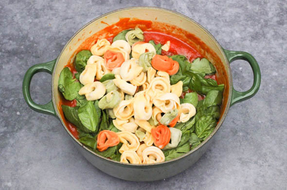 Lastly, pour in the tortellini and spinach. Stir well and cook for 10 minutes.